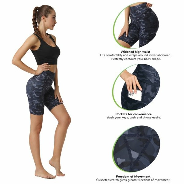 Women's Yoga Shorts W/Pockets High Waist Tummy Control Workout Biker Shorts for Athletic Running